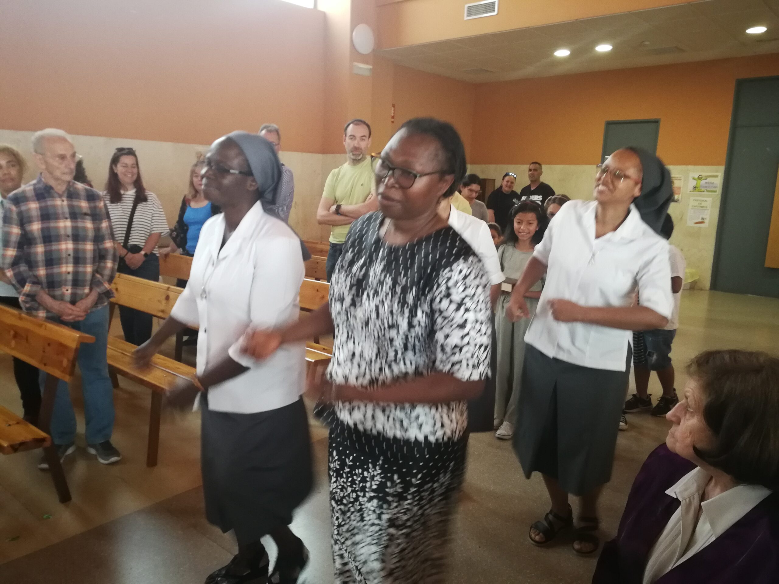 La celebración tuvo lugar en la parroquia Nuestra Señora de la Aurora y el Santo Ángel, en un ambiente muy simple y fraterno con la presencia de nuestras hermanas, laicos de AMAM y amigos. La Eucaristía de las 11 h, la de los niños, fue una oportunidad para darles a conocer lo que es la vocación a la vida Consagrada.