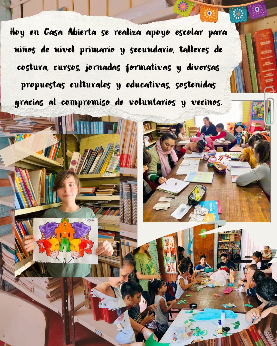 A lo largo de los años, el centro se ha consolidado como un punto de referencia comunitario, ofreciendo apoyo escolar para estudiantes de nivel primario y secundario, talleres de costura, cursos, jornadas de capacitación y distintas actividades culturales y educativas. Todo esto es posible gracias al compromiso solidario de voluntarios y vecinos.