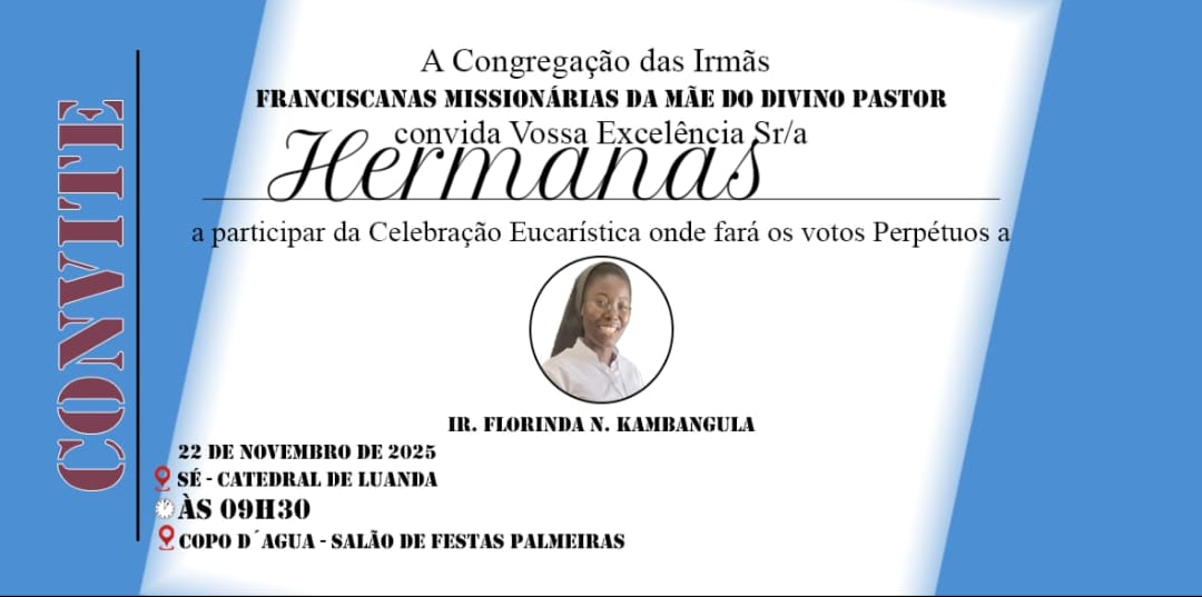 Desde Angola, nuestra hermana Florinda comparte con alegría la invitación a su Profesión Perpetua.