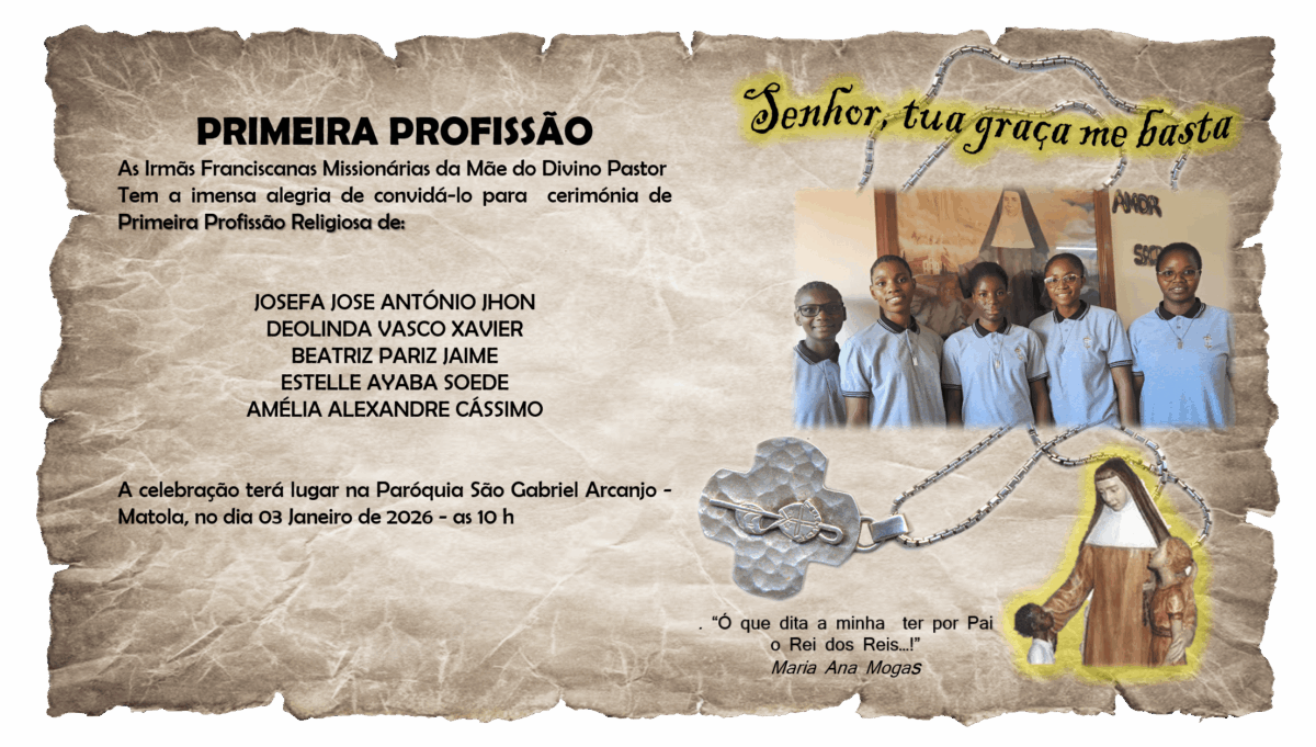El día 3 de enero harán su primera profesión las novicias de la Región de África: Josefa J. António, Deolinda Vasco, Beatriz Paris, Estelle Ayaba y Amelia Alexandre.